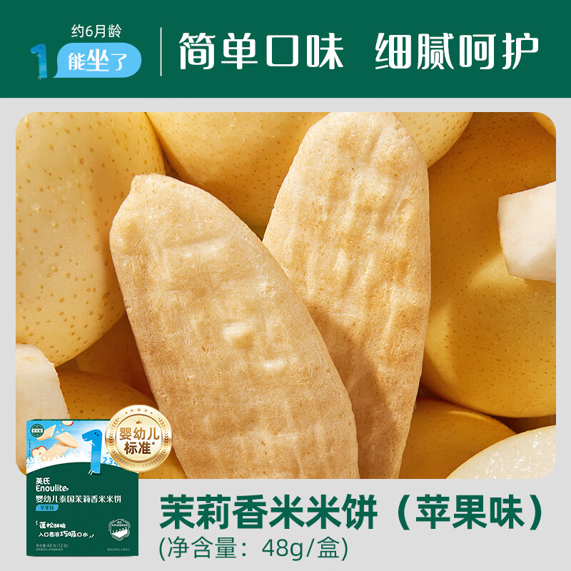 英氏(Engnice)婴幼儿米饼苹果味婴儿零食磨牙饼干宝宝零食48g哄娃解馋入口易溶