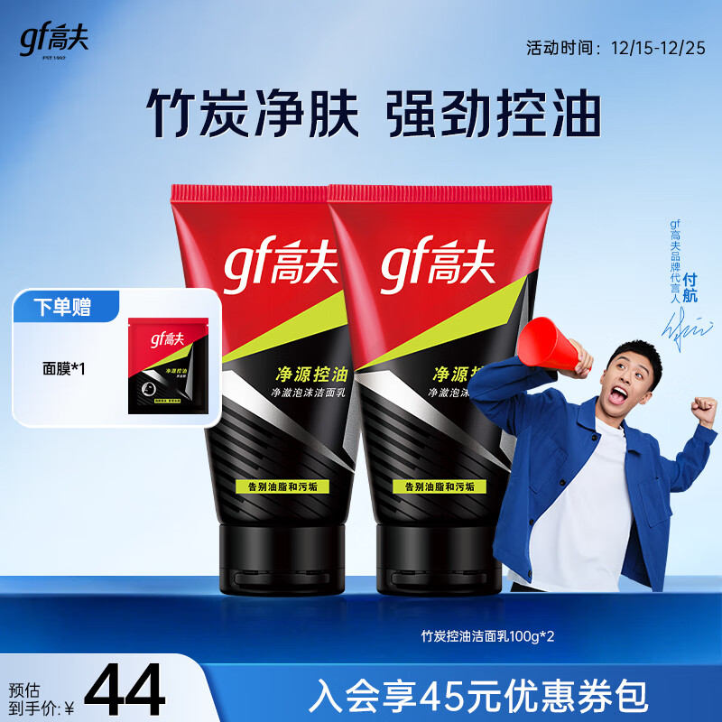 高夫男士净源控油泡沫洗面奶100g*2 控油清洁男士专用护肤品学生党