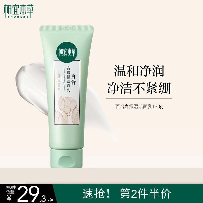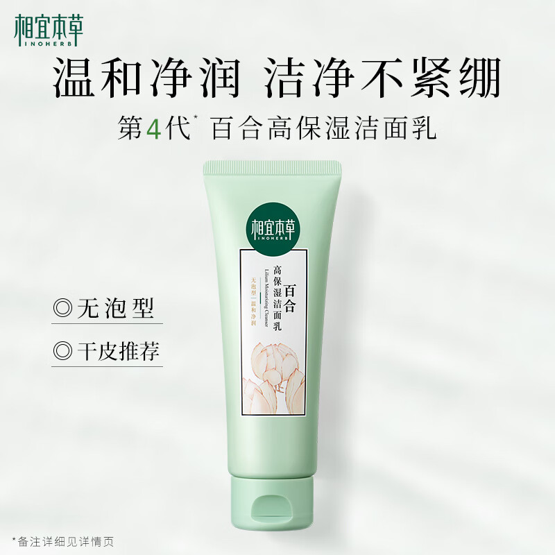 相宜本草百合高保湿洁面乳130g 温和洁净洗面奶不紧绷圣诞礼物