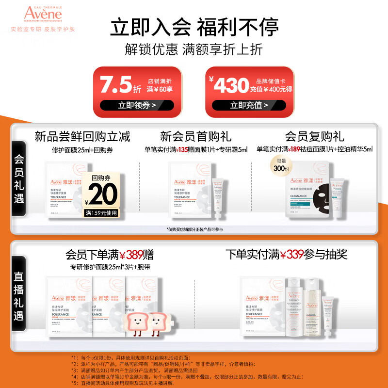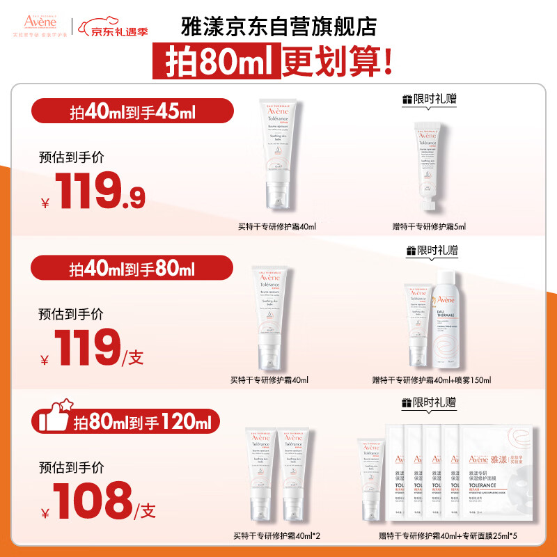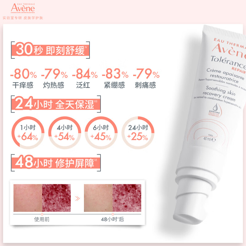 雅漾(Avene)【樊振东同款】专研修护霜滋润版40ML*2敏肌保湿舒缓泛红乳液面霜