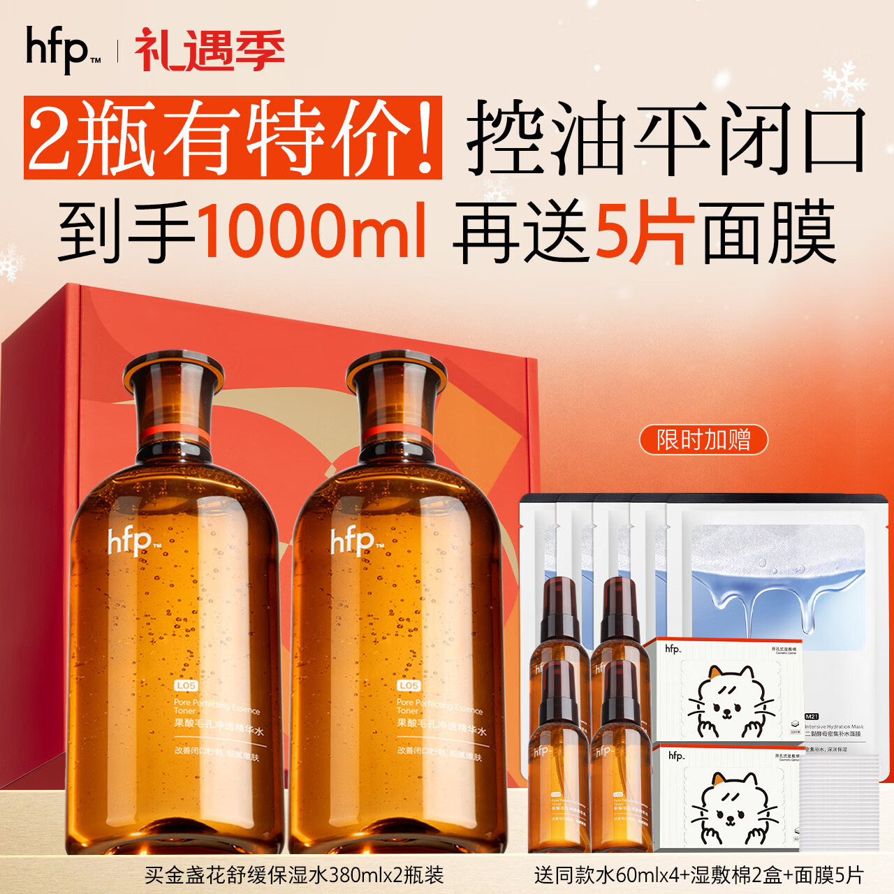 hfp果酸精粹水套装礼盒湿敷爽肤水祛痘控油去闭口补水喷雾保湿护肤水