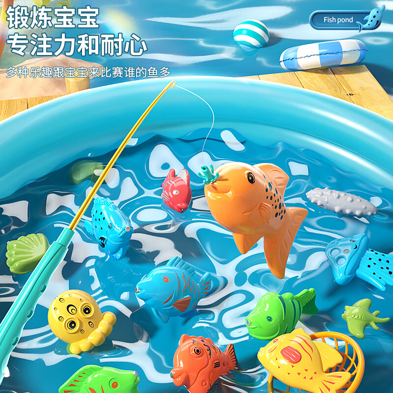 古欧儿童磁吸钓鱼玩具宝宝早教捕鱼捞鱼钓鱼池亲子男女1-3岁生日礼物