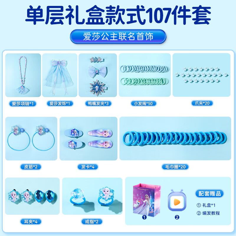 迪士尼(Disney)爱莎公主儿童首饰盒玩具小女孩6-12岁圣诞节生日礼物艾莎发饰冰雪