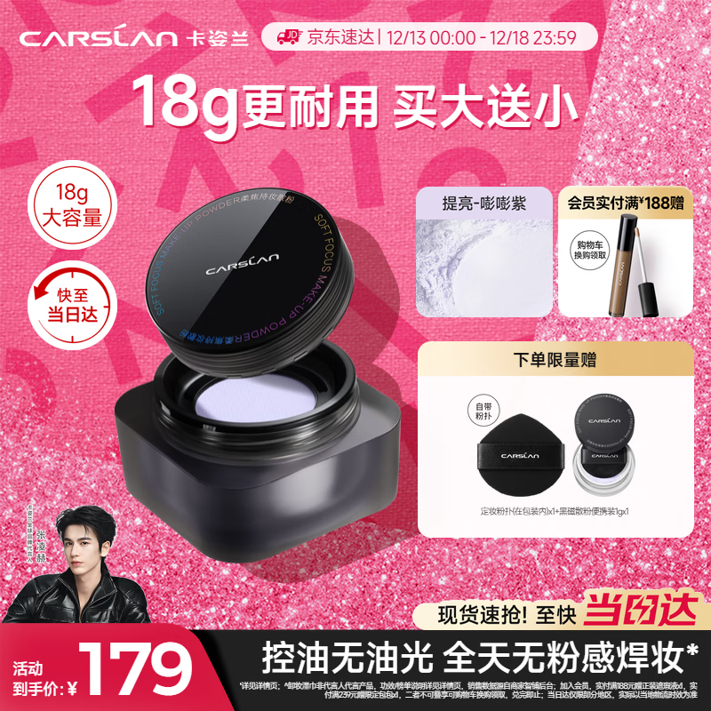 卡姿兰(Carslan)黑磁散粉定妆蜜粉饼控油遮瑕持久防汗大容量(蓝紫色)18g 圣诞礼物