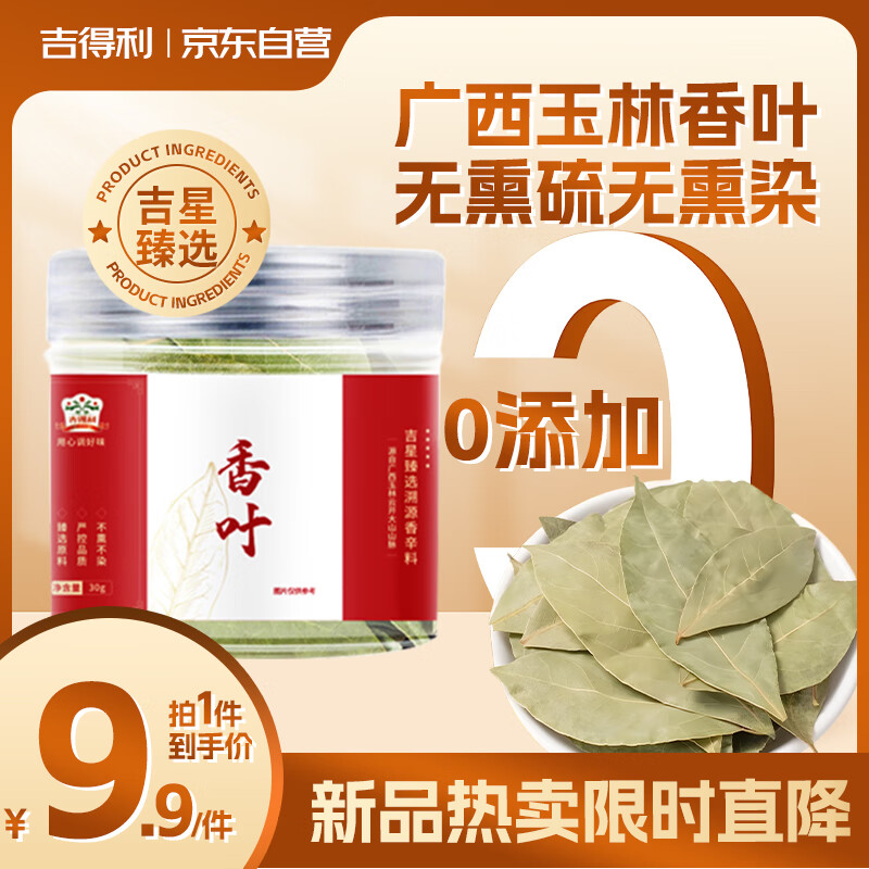 吉得利 香叶30g 罐装 广西玉林无熏硫月桂叶炖肉卤肉烧菜调料