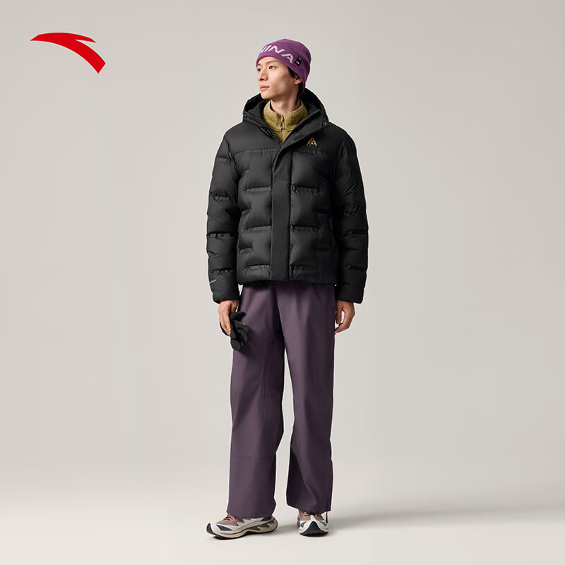 安踏(ANTA)面包羽绒服丨六度芯樊振东同款鹅绒服外套男冬季短款加厚棉服男装 【鹅绒85% XL155g】基础黑-5 L (男175)