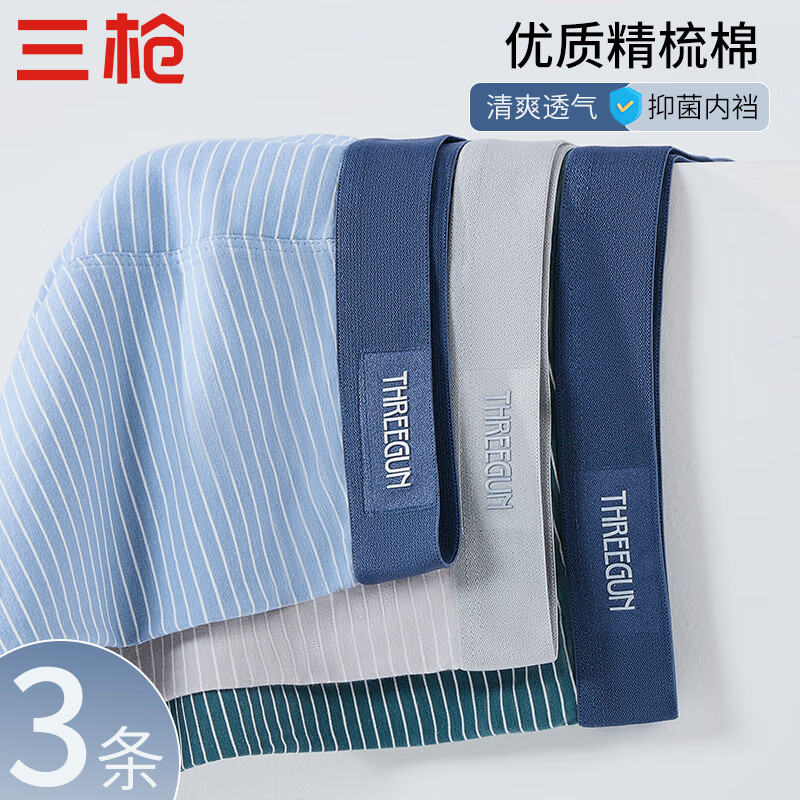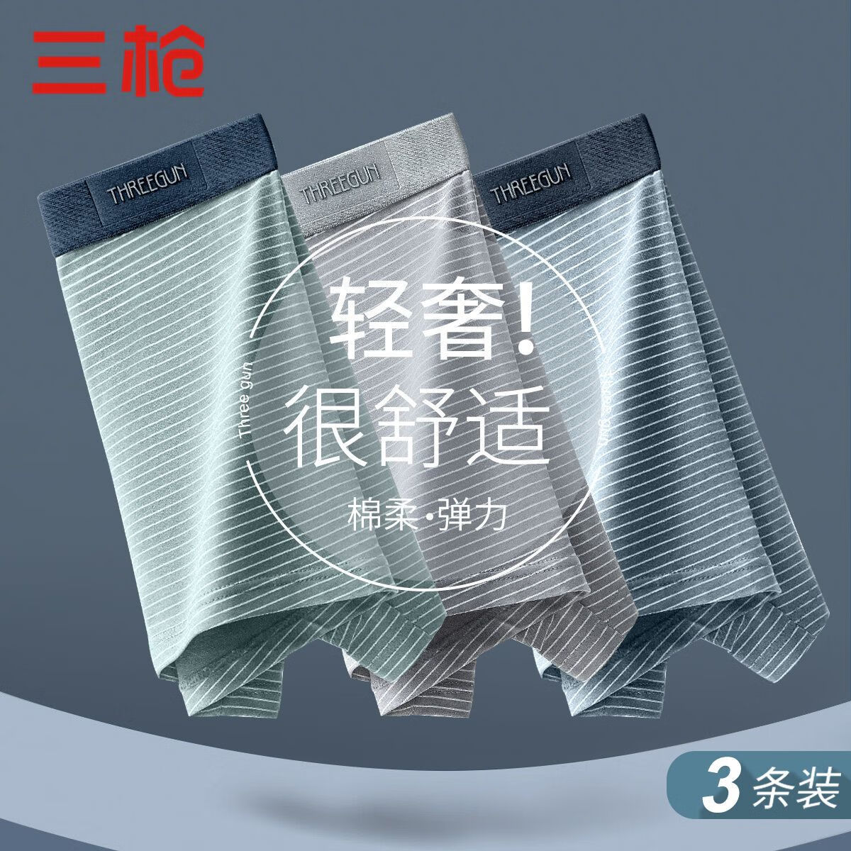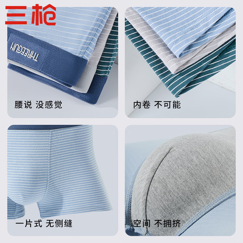 三枪【简系列】男士内裤男士纯棉平角裤7A抑菌短裤衩大码经典条纹款