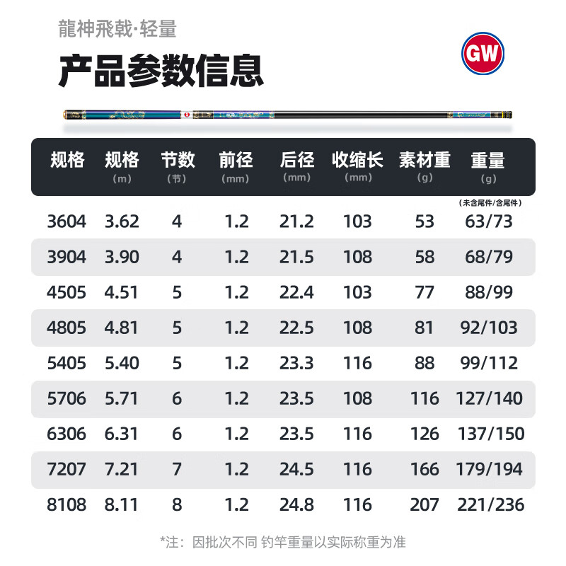 光威(GW)龙神飞戟轻量版5.4米超轻超硬28调高碳综合竿