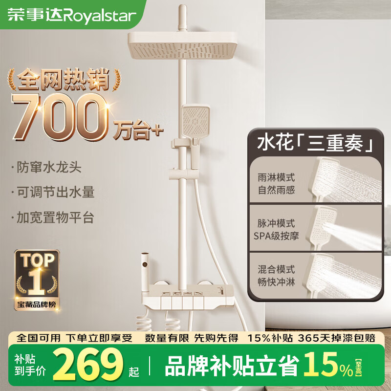 荣事达淋浴花洒全套增压套装喷头增压沐浴头浴室洗浴淋浴器一整套奶白