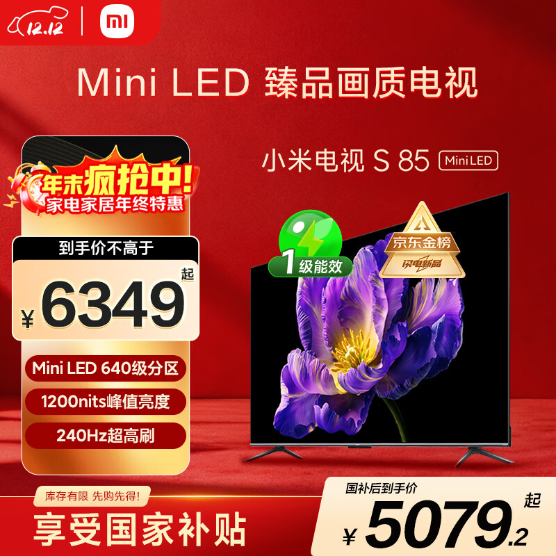 小米(MI)电视S85 Mini LED 85英寸 640分区 1200nits 240Hz 澎湃OS 一级能效 L85MA-SPL 国家补贴以旧换新