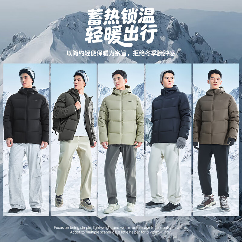 鸿星尔克(ERKE)驭光科技羽绒服男秋冬季新款保暖防寒户外休闲三防羽绒连帽外套 正黑 XL (170-175cm/130-140斤)
