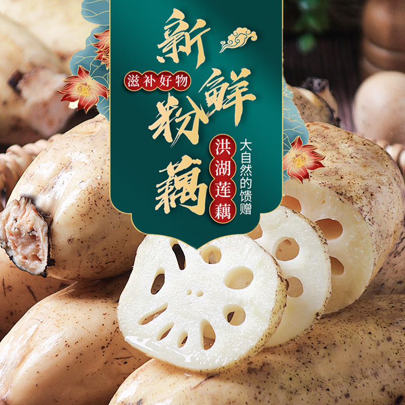 京鲜生 湖北洪湖新鲜莲藕粉藕净重3斤(3-4节装)带泥锁鲜 蔬菜源头直发