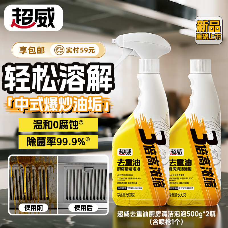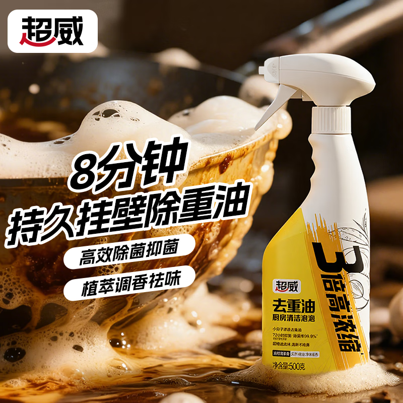 超威重油污清洁泡泡500g*2瓶去重油清洁剂油烟机灶台油污净家庭清洁