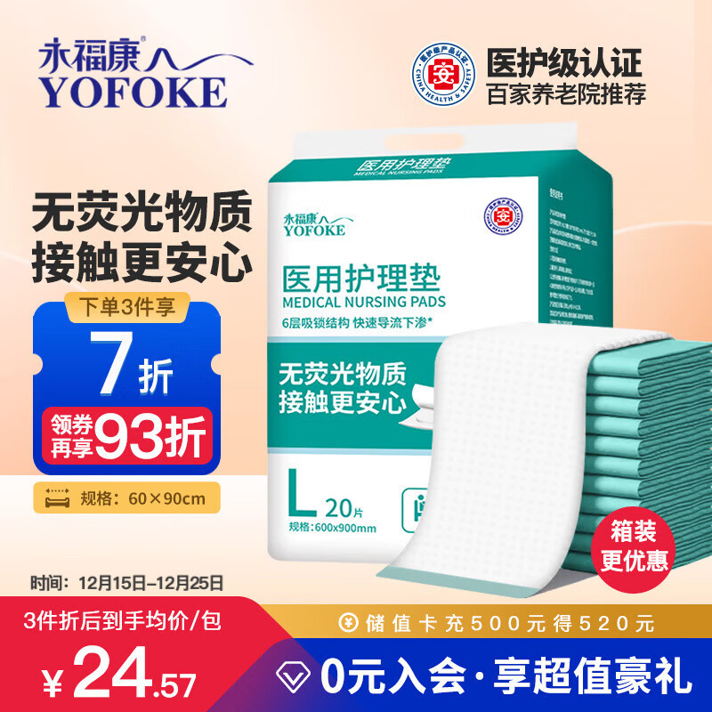 永福康医用护理垫 L20片 尺寸60*90cm 婴儿孕产妇床垫老人一次性隔尿垫
