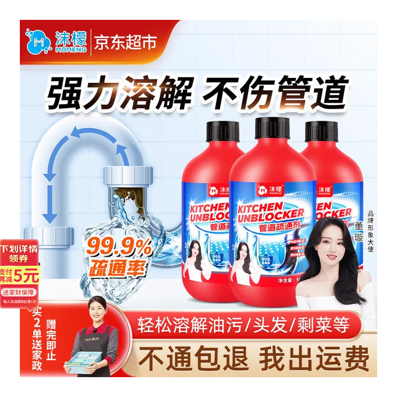 沫檬管道疏通剂500g*3 厨房马桶下水管道疏通剂地漏强力溶解剂