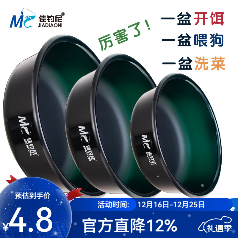 佳钓尼(JIADIAONI)饵盆饵料盆超深底不沾散炮盆拌饵拉饵盆钓鱼饵盆渔具钓鱼配件 开饵浅盆墨绿 (24#)