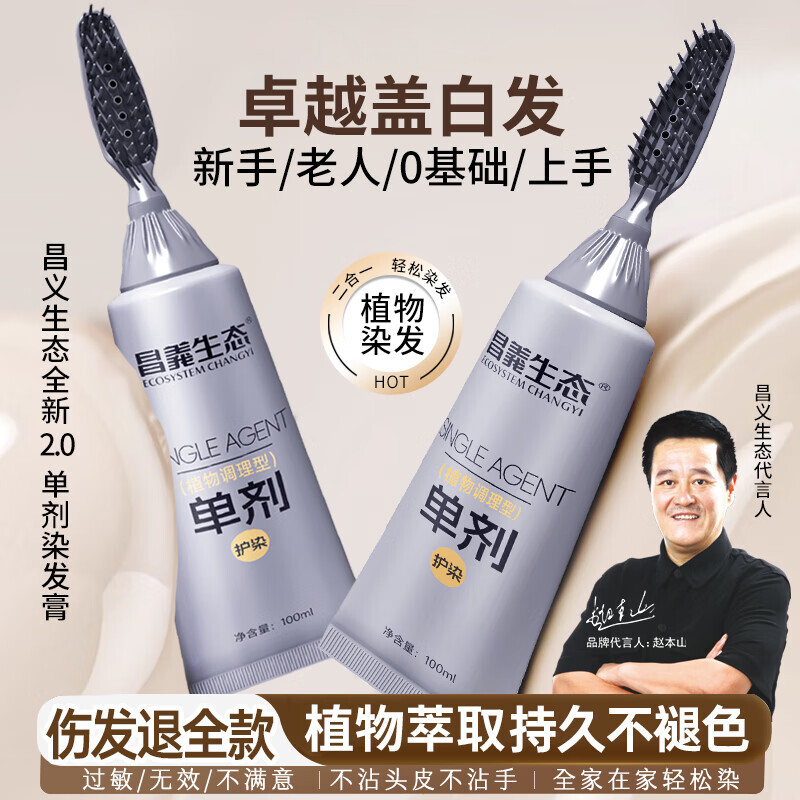昌义生态(CHANGYISHENGTAI)白转黑自然黑植物调理型盖白染发剂遮盖白发染黑发