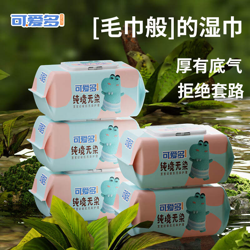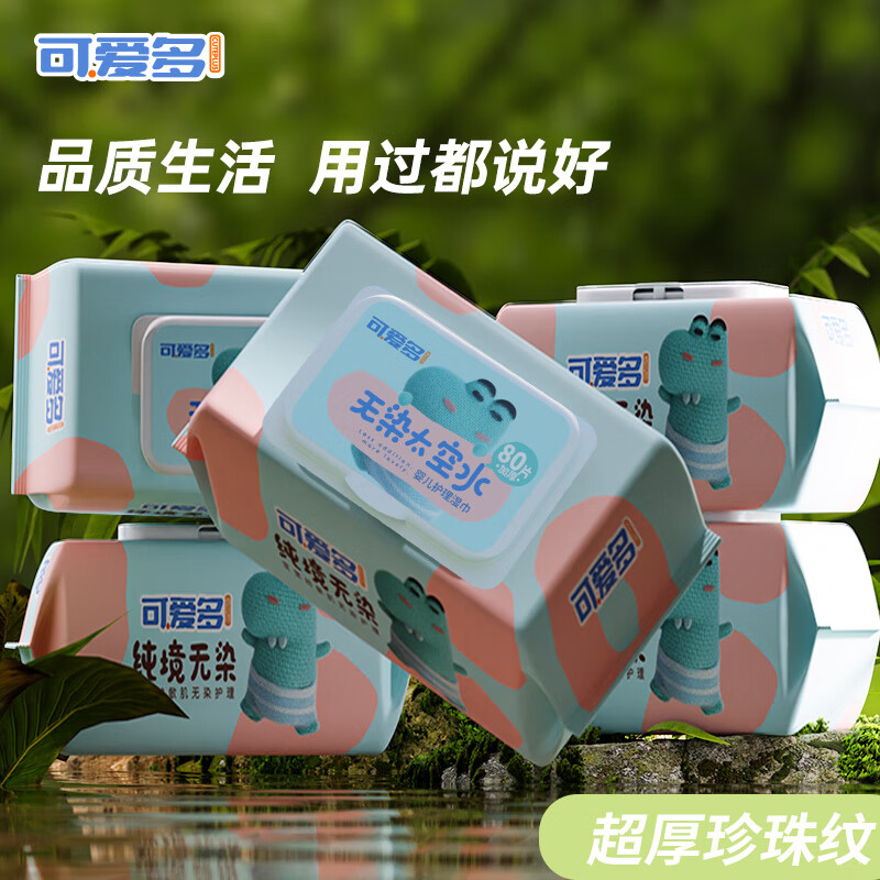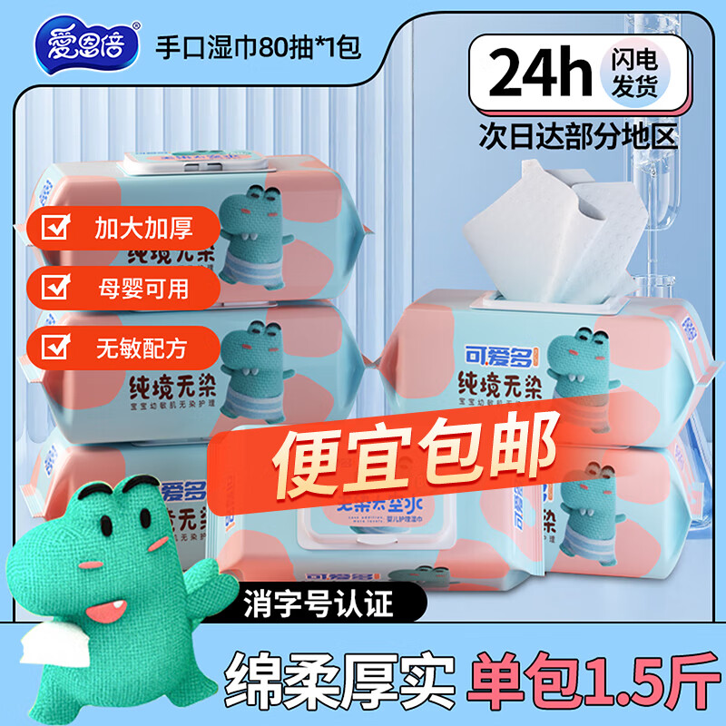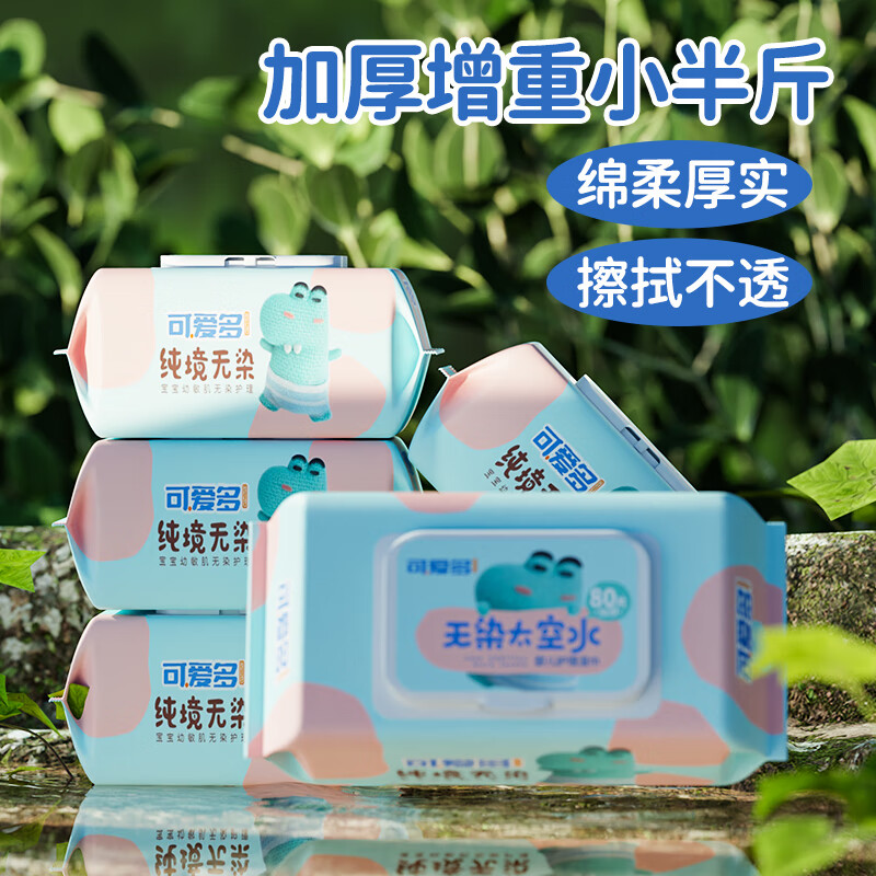 可爱多婴幼儿童手口湿巾80抽*1包新生专用擦屁宝宝湿纸巾家用实惠装大包