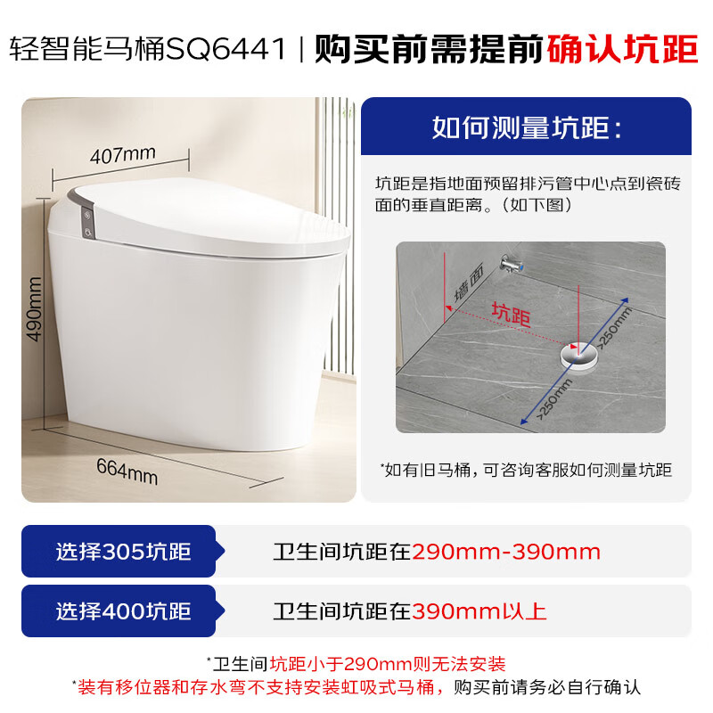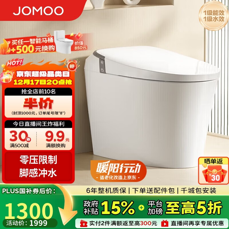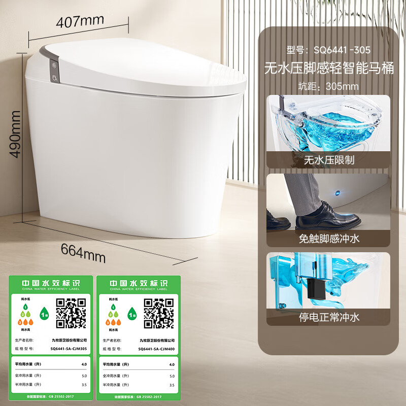 九牧(JOMOO)无水压限制轻智能马桶座圈加热脚感冲水SQ6441-SA-CJM305坑距