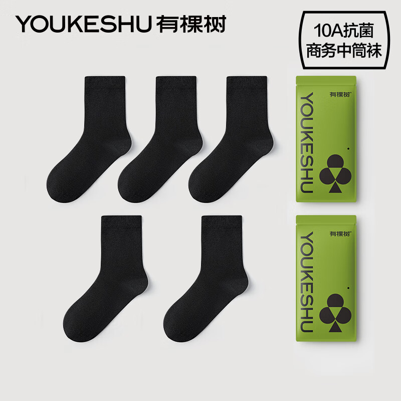 有棵树男士袜子男纯棉中筒袜10A抗菌防臭商务袜吸汗透气抗起球休闲长袜