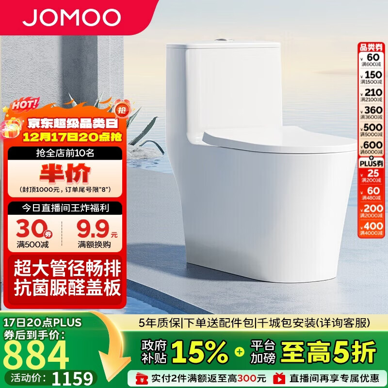 九牧(JOMOO)11322-2-2/31KB-1抗菌一级水效大冲力马桶虹吸式加坐便器305坑距