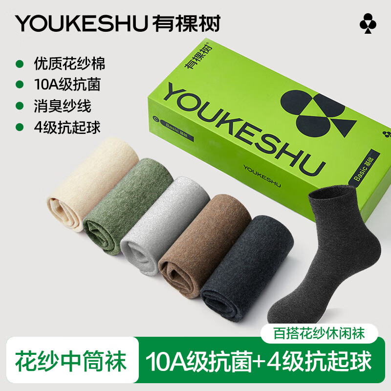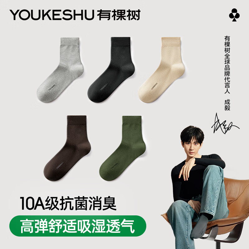 有棵树男士袜子男10A抗菌消臭纯棉中筒袜秋冬柔软吸汗透气休闲百搭长袜