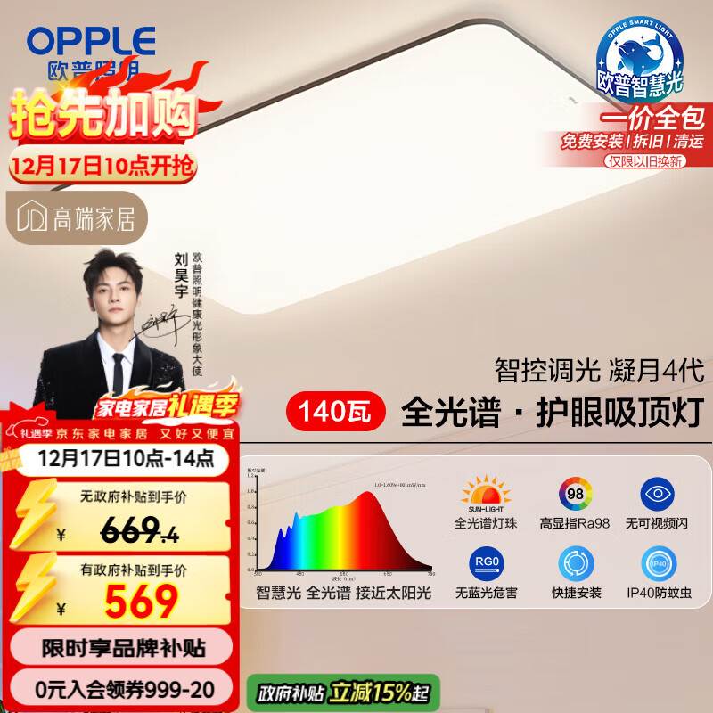 欧普照明(OPPLE)全光谱护眼吸顶灯客厅灯智能LED照明灯具简约大气包安装 凝月4黑