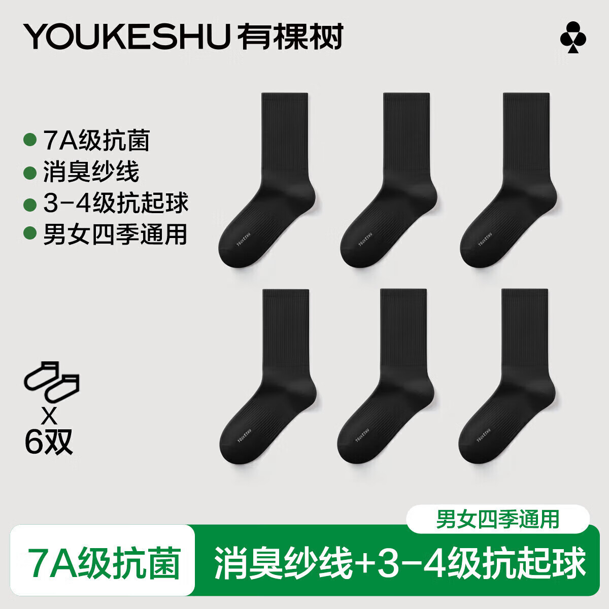 有棵树袜子男10A抗菌消臭秋冬中筒女轻运动新疆棉吸汗透气情侣休闲长袜