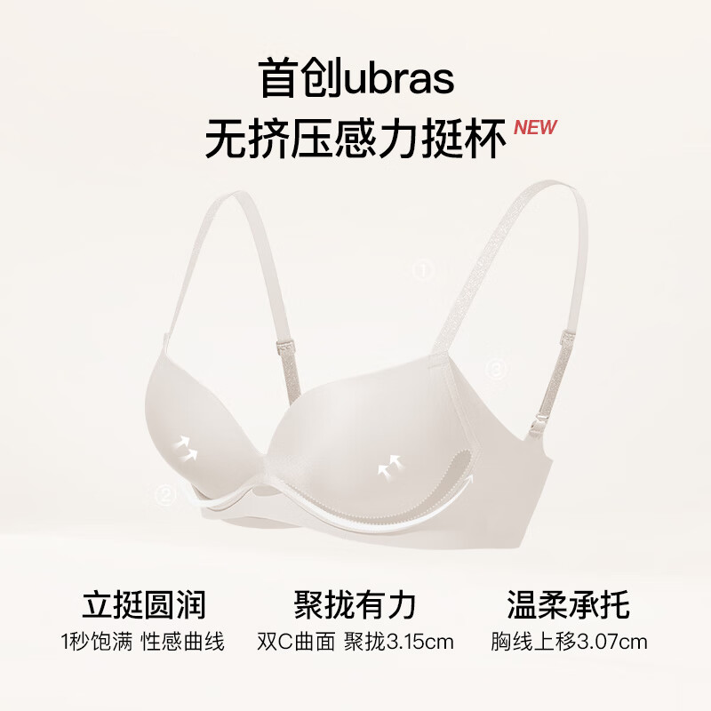 ubras新品力挺杯粉底液收副乳小胸聚拢显大无痕文胸罩女隐形肤百搭M