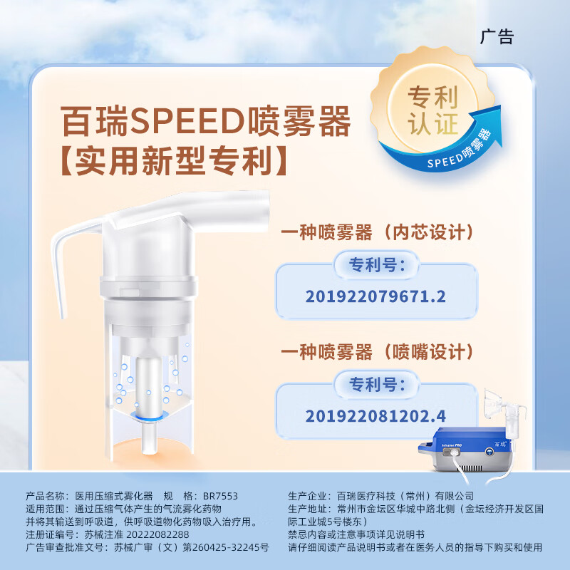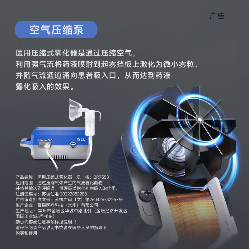 百瑞雾化机家用儿童老人便携医用压缩式雾化器BR系列喷雾升级款BR7553