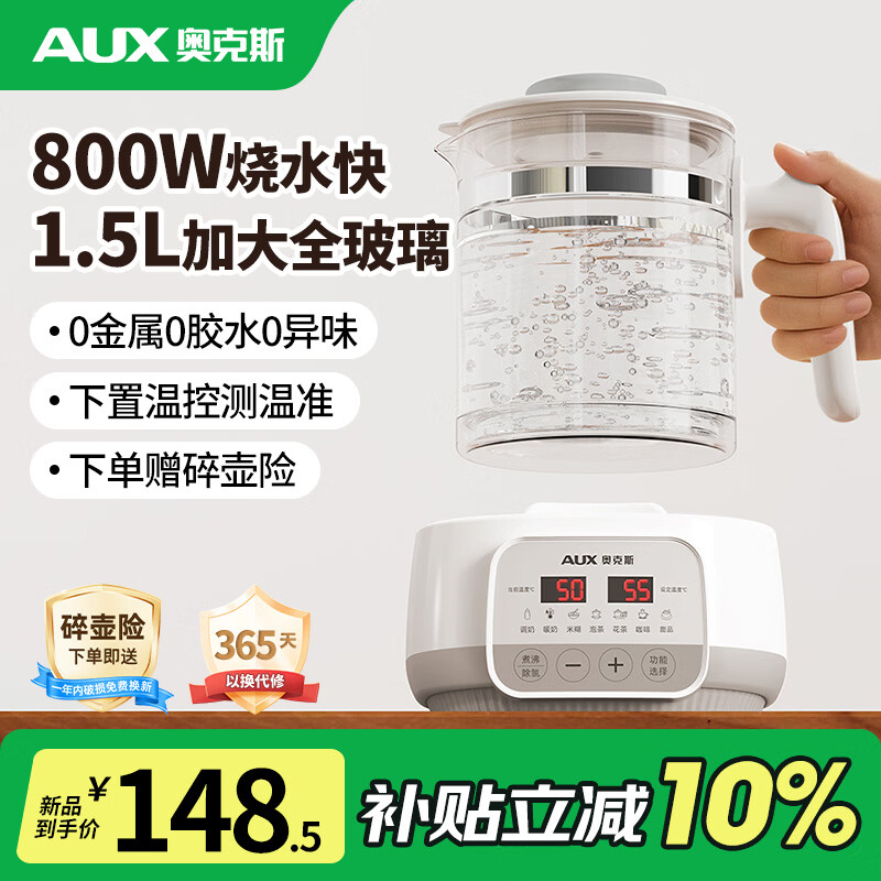 奥克斯全玻璃恒温壶 0胶水恒温调奶器冲奶水壶 母婴级养生壶烧水壶