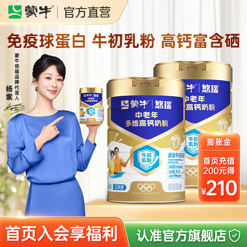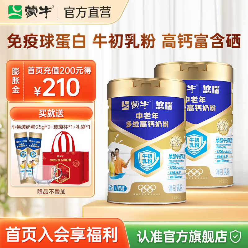 蒙牛悠瑞金装中老年多维高钙奶粉过节礼品节日送礼礼盒送长辈杨紫代言 900g*2罐【赠小条装*2+礼袋+杯子】