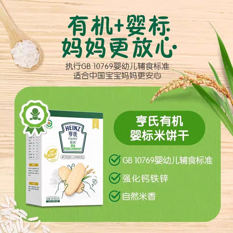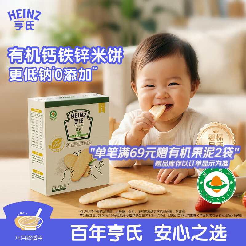 亨氏(Heinz)有机婴幼儿钙铁锌米饼原味 宝宝婴儿零食辅食 50g
