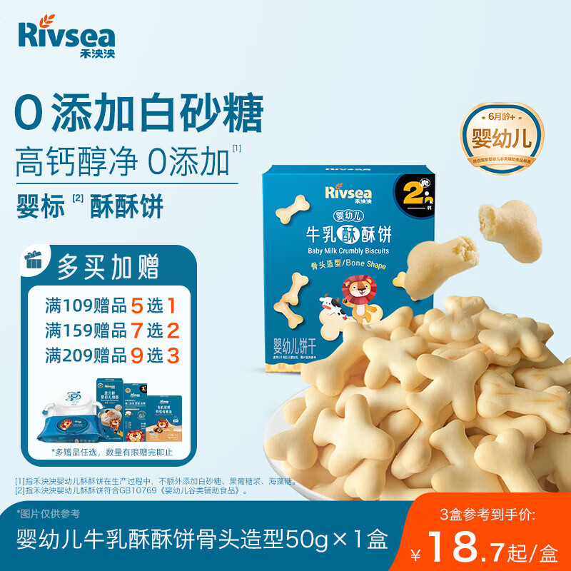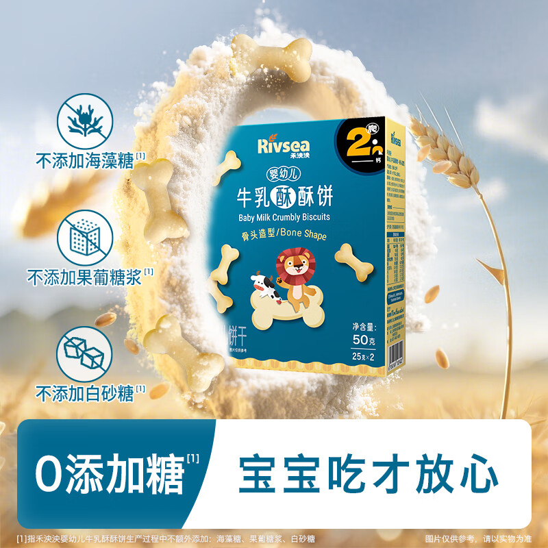 禾泱泱婴幼儿牛乳酥酥饼骨头造型50g宝宝零食磨牙饼干强化钙铁锌6月+
