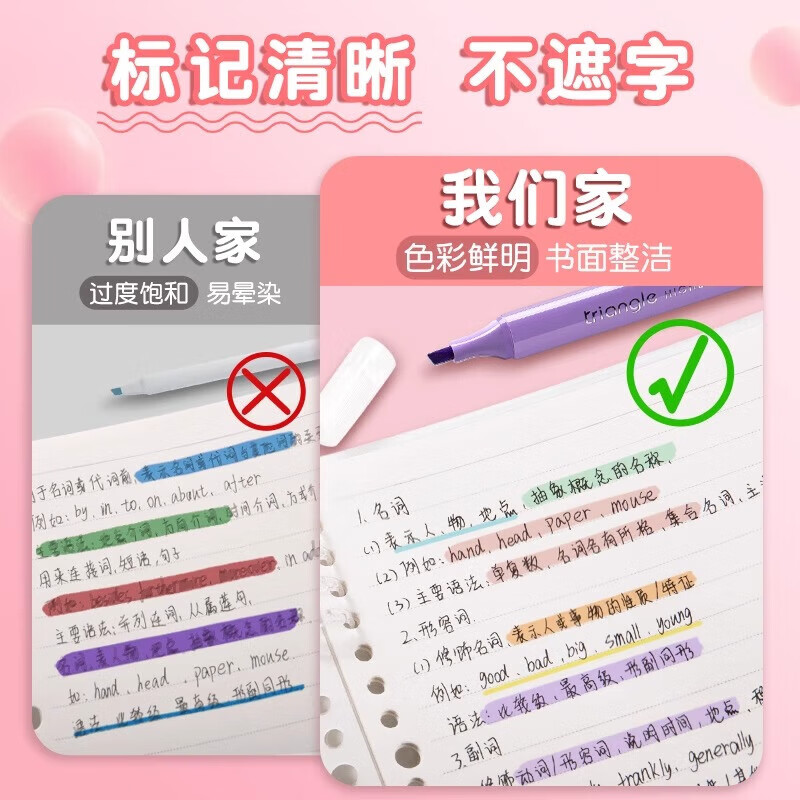 三角笔杆荧光笔学生用划重点彩色记号笔荧光标记笔做笔记专用彩笔手账笔高颜值涂鸦大容量 马卡龙色/6支