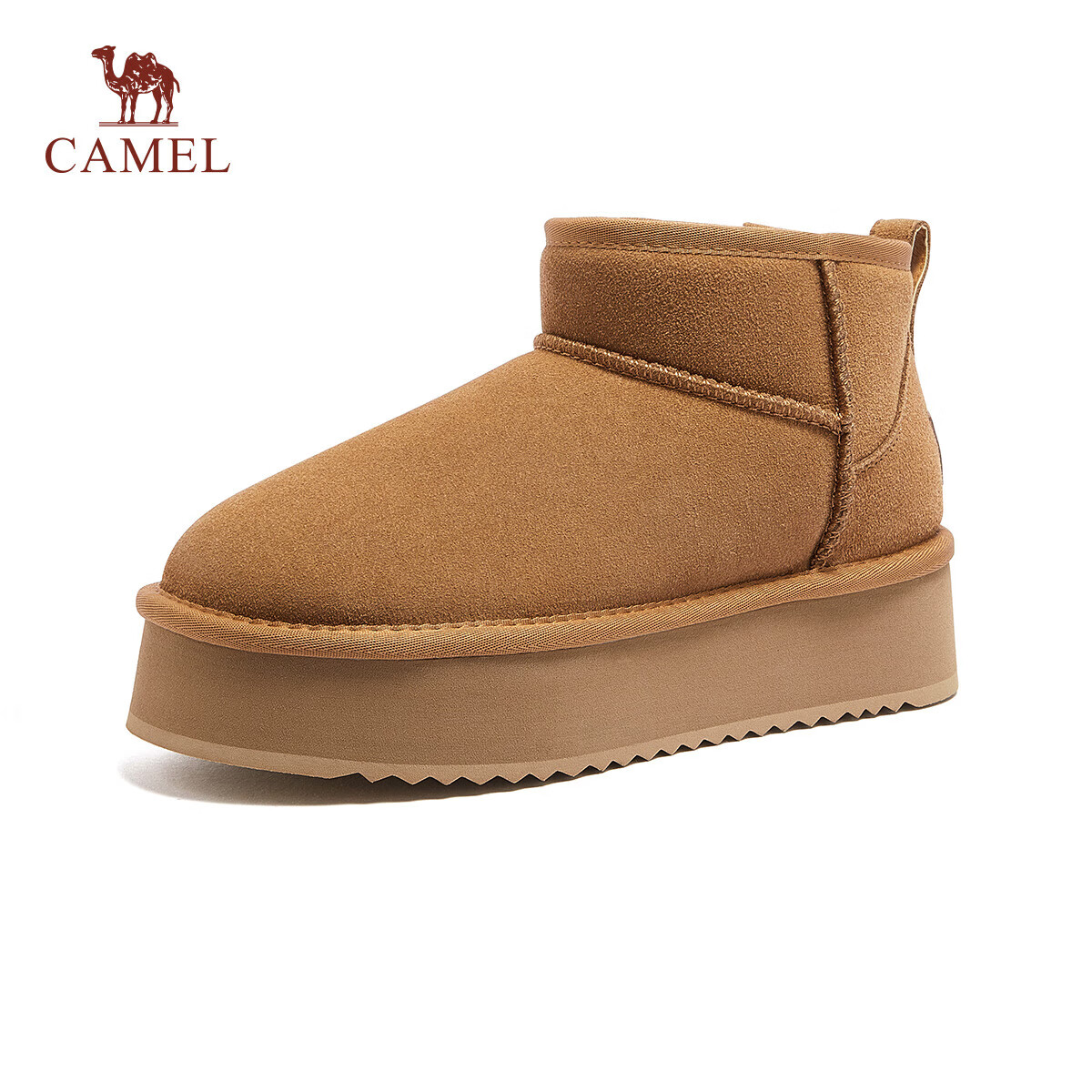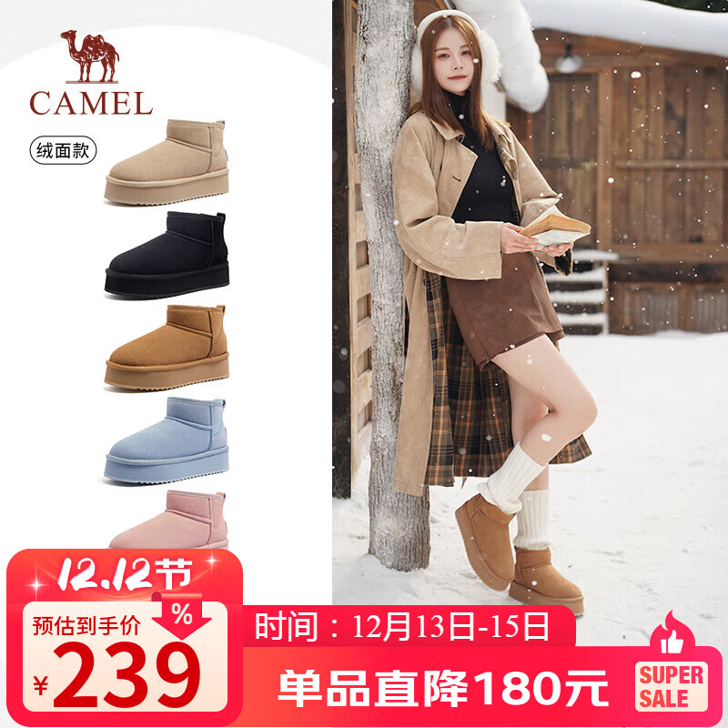 骆驼(CAMEL)小暖阳雪地靴女厚绒增高保暖靴 L25W275051 驼色(反绒面) 37