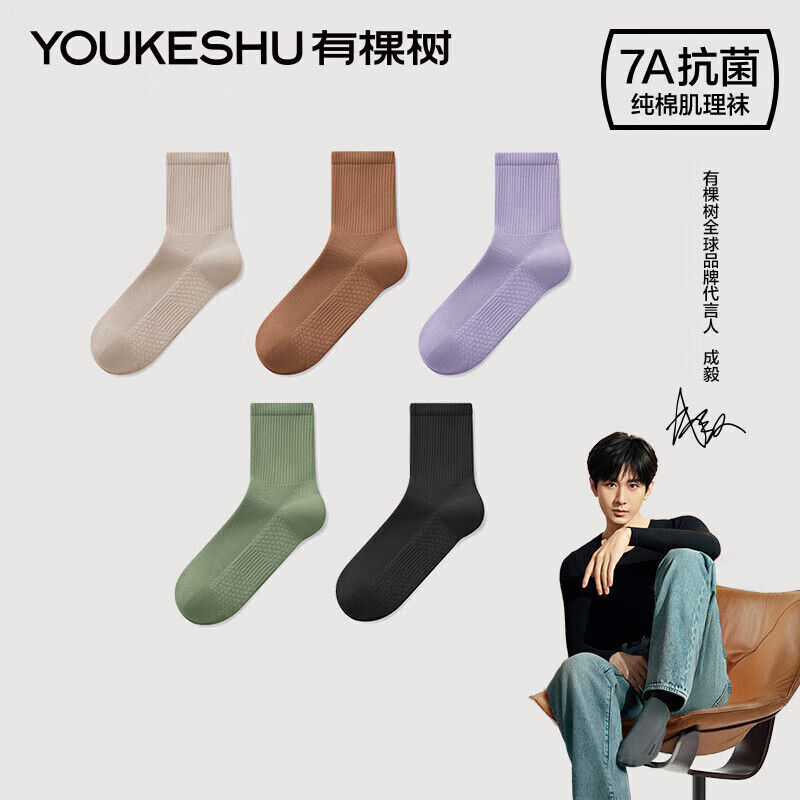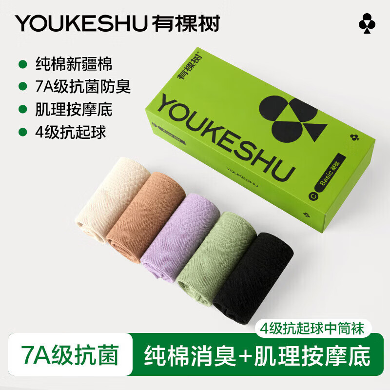 有棵树【肌理按摩】女士袜子女纯棉7A抗菌中筒袜吸汗透气防臭抗休闲袜