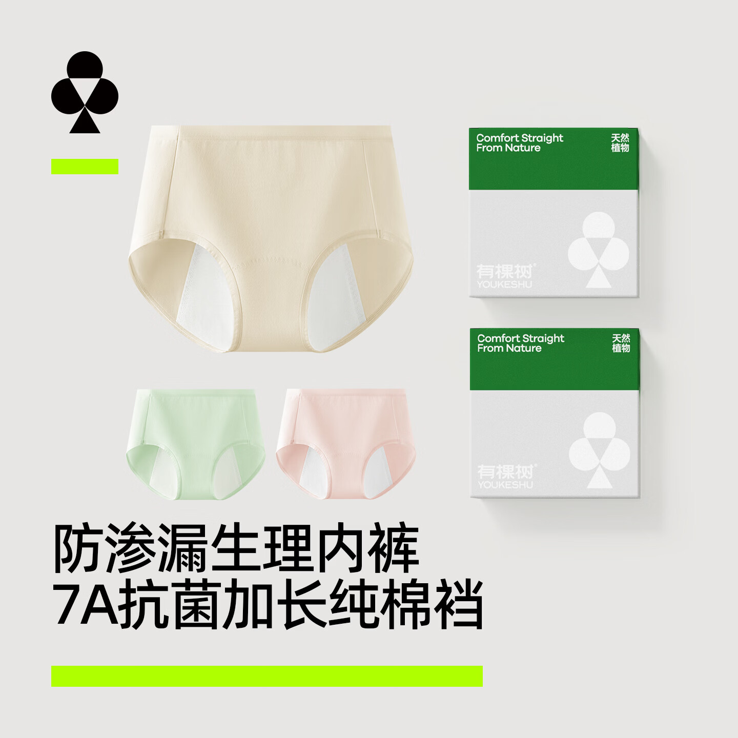 有棵树女士内裤女生理期7A抗菌纯棉加长裆防侧漏月经姨妈期加宽安全裤