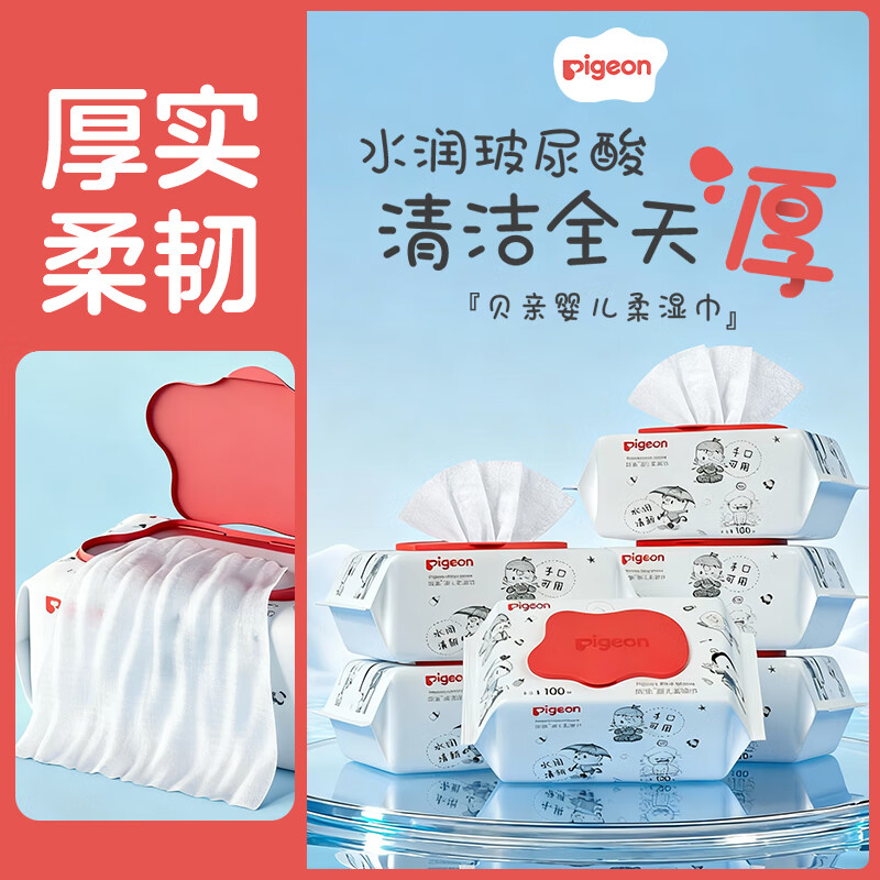 贝亲(Pigeon)新生婴儿手口湿巾亲肤加厚手口屁屁专用湿纸巾 100抽*6包 PL347