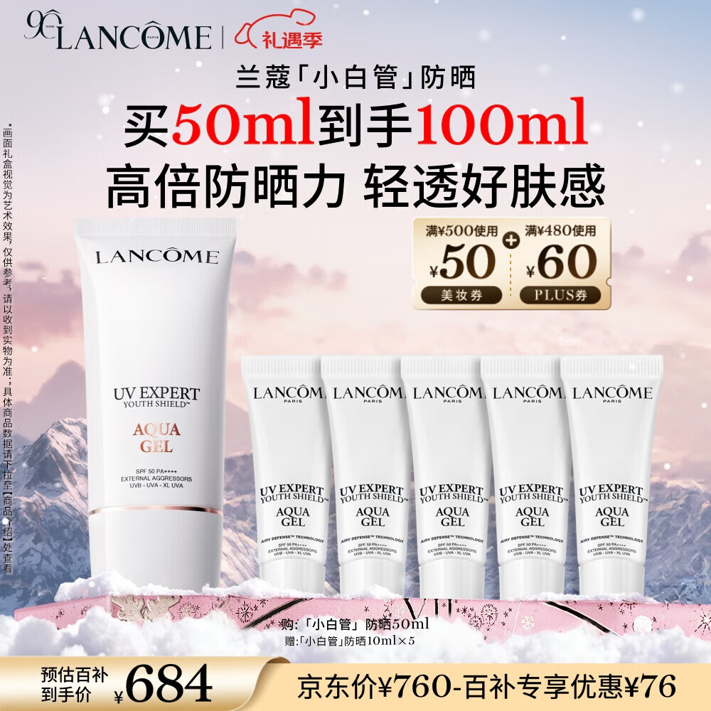兰蔻轻透水漾防晒乳50ml小白管化妆品礼盒生日生日圣诞礼物送女友