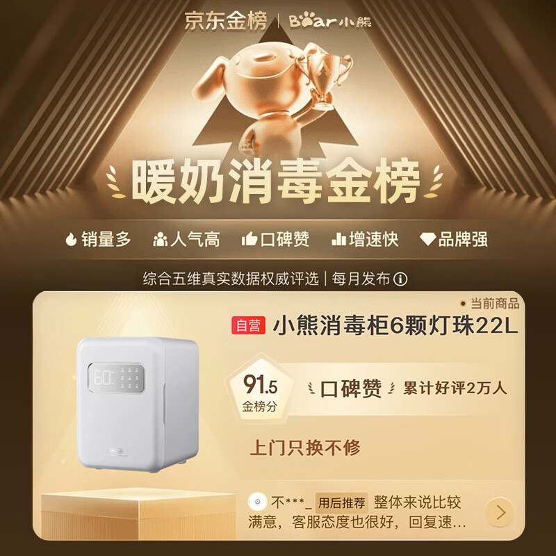 小熊(Bear)消毒柜奶瓶 紫外线消毒器带烘干一体机 婴儿专用消毒柜22L+6面6颗