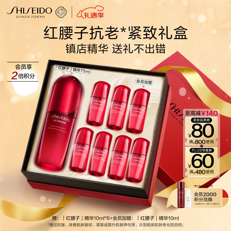 资生堂红妍肌活红腰子面部精华75ml抗老淡化细纹护肤化妆品礼盒圣诞礼物