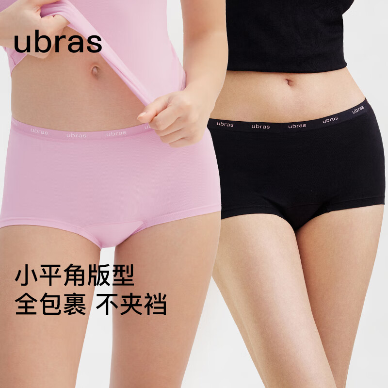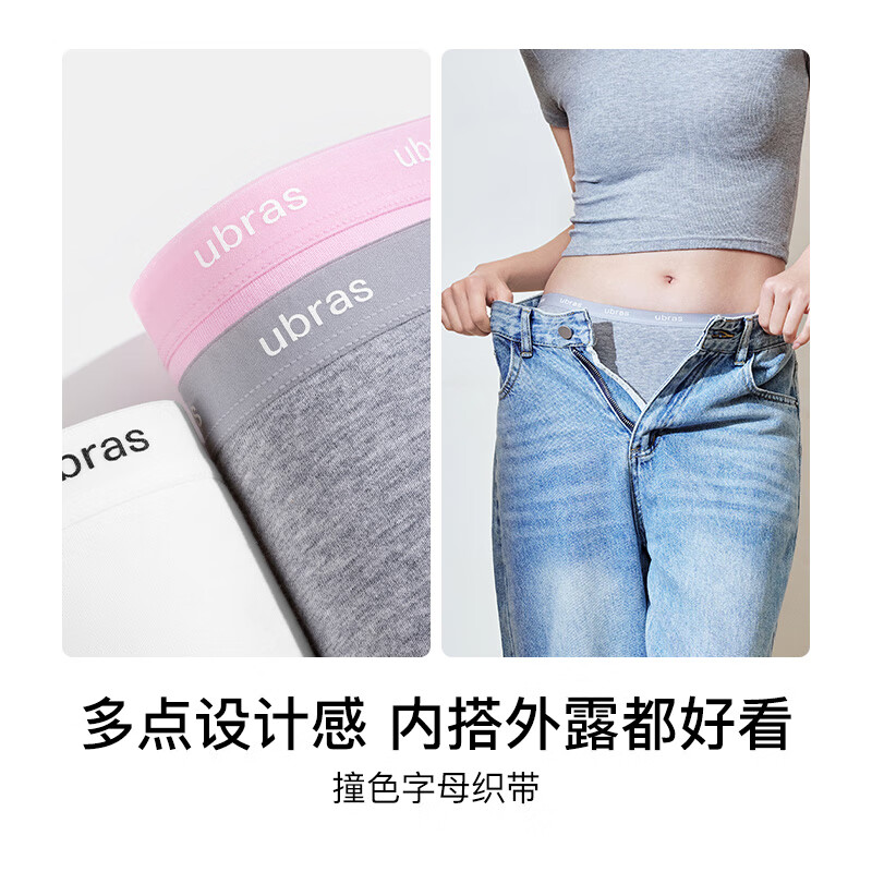 ubras25新品纯棉内裤女新疆棉抗菌裆撞色字母织带中腰平角裤头 涟漪蓝色+中花灰色+白色 3条 L