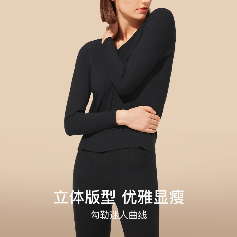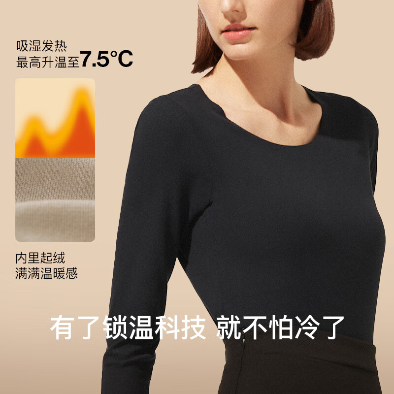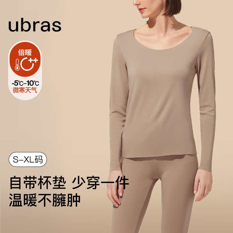 ubras倍暖无痕圆领肌底衣女秋衣秋裤套装保暖内衣女亲肤打底 倍暖摩卡色(有胸垫bra-in) M