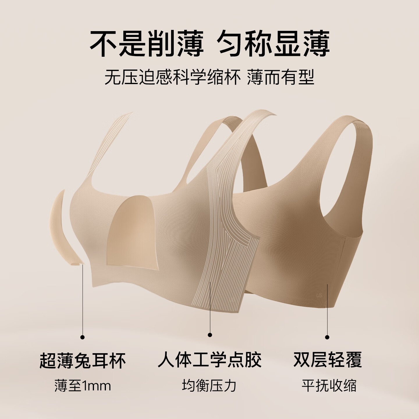 ubras25年新无尺码小奶皮纸片人内衣胸大显小瘦薄无痕隐形背心文胸女 文胸-隐形肤色(原肤裸) 均码 标准版 100-130斤/A-C杯