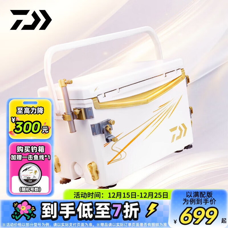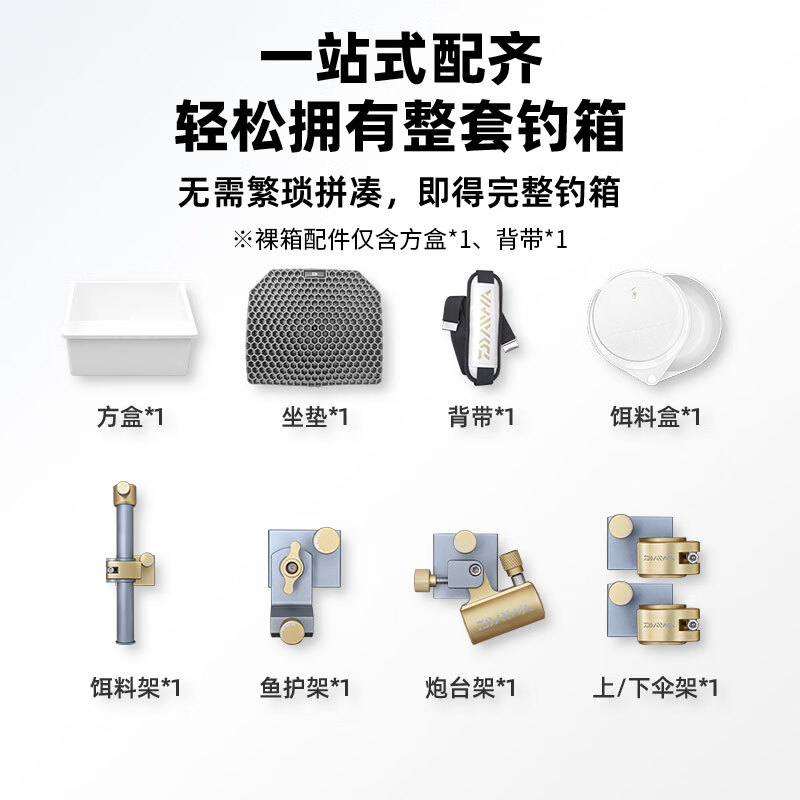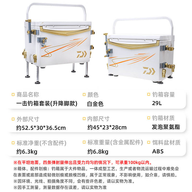 达亿瓦(DAIWA)25新款 一击 带升降脚钓箱 带配件多功能可坐人免安装钓鱼箱 29L 【满配右手版】29升-白x金 外尺寸约52.5x30x36.5cm