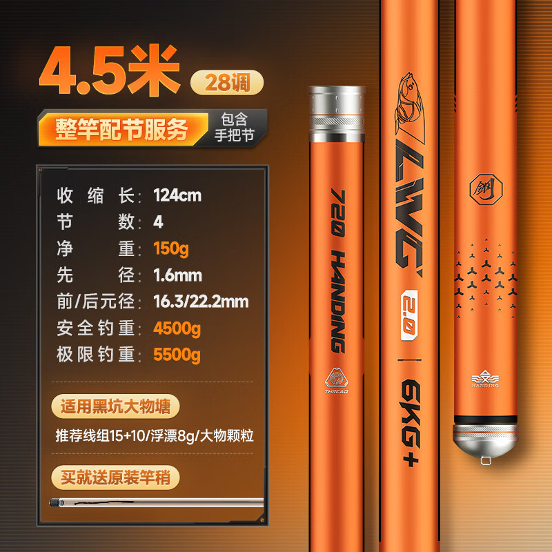 汉鼎螺纹钢二代大物巨物竿28调5.5H鲢鳙青鲟鱼台钓杆手竿综合钓竿鱼竿 4.5m -5.5H硬度-22%用户选择