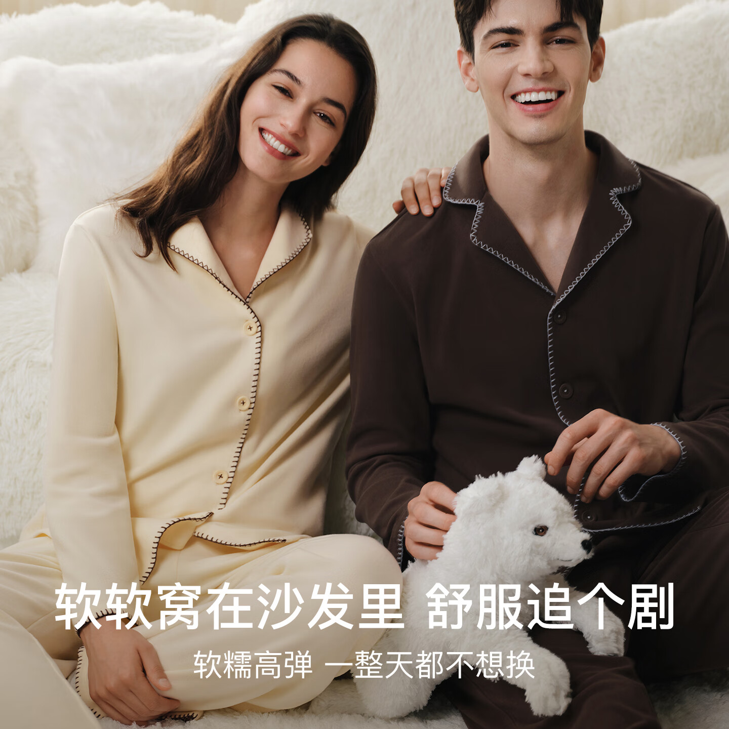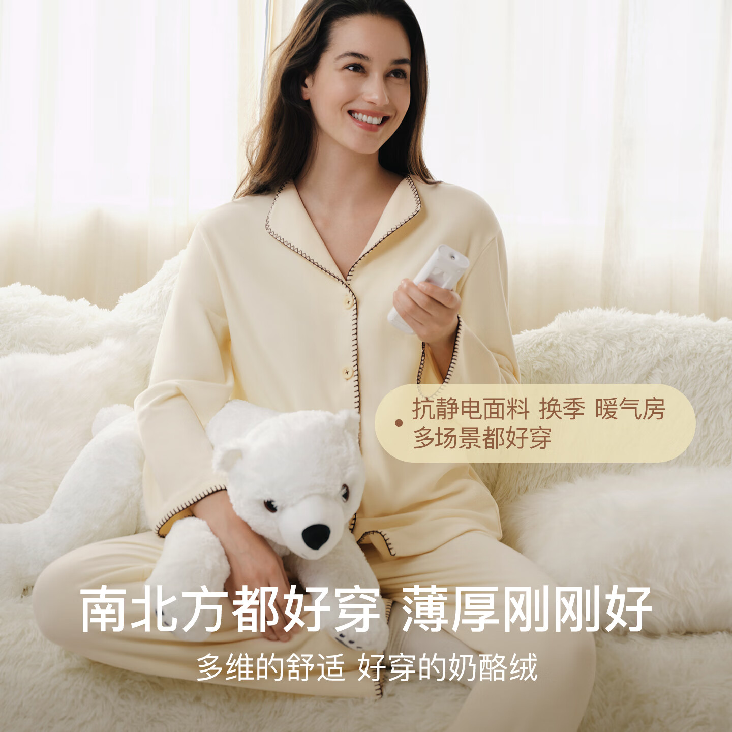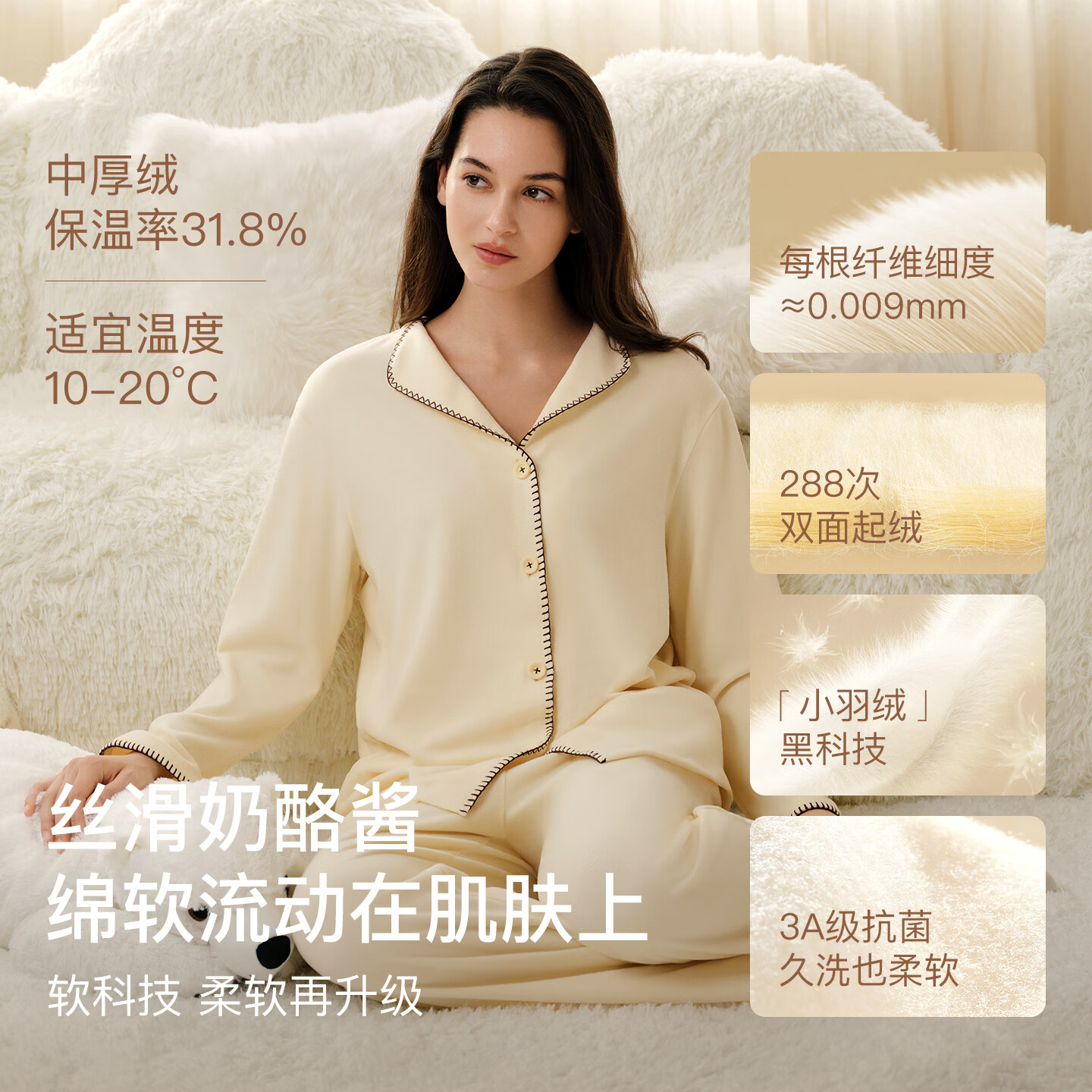 ubras刘雯同款25年新品奶酪绒开襟秋冬睡衣长袖长裤套装情侣款家居服 女款-奶酪黄色 【刘雯同款】 M