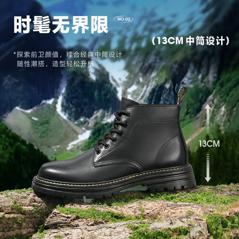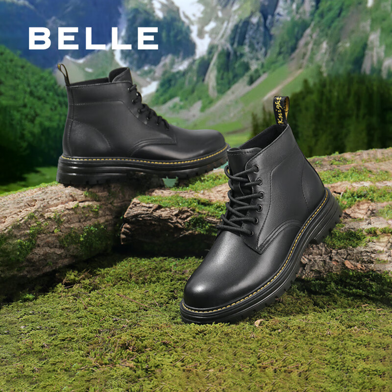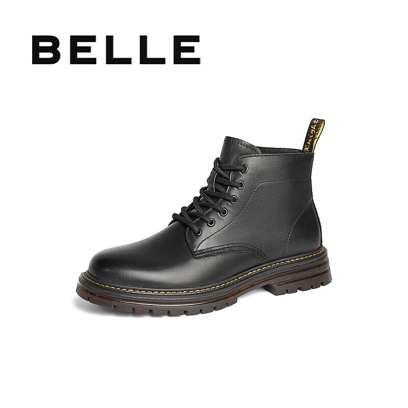 百丽黑曜石勇士厚底休闲加绒靴子户外工装马丁靴A1764DD4 黑单里 41