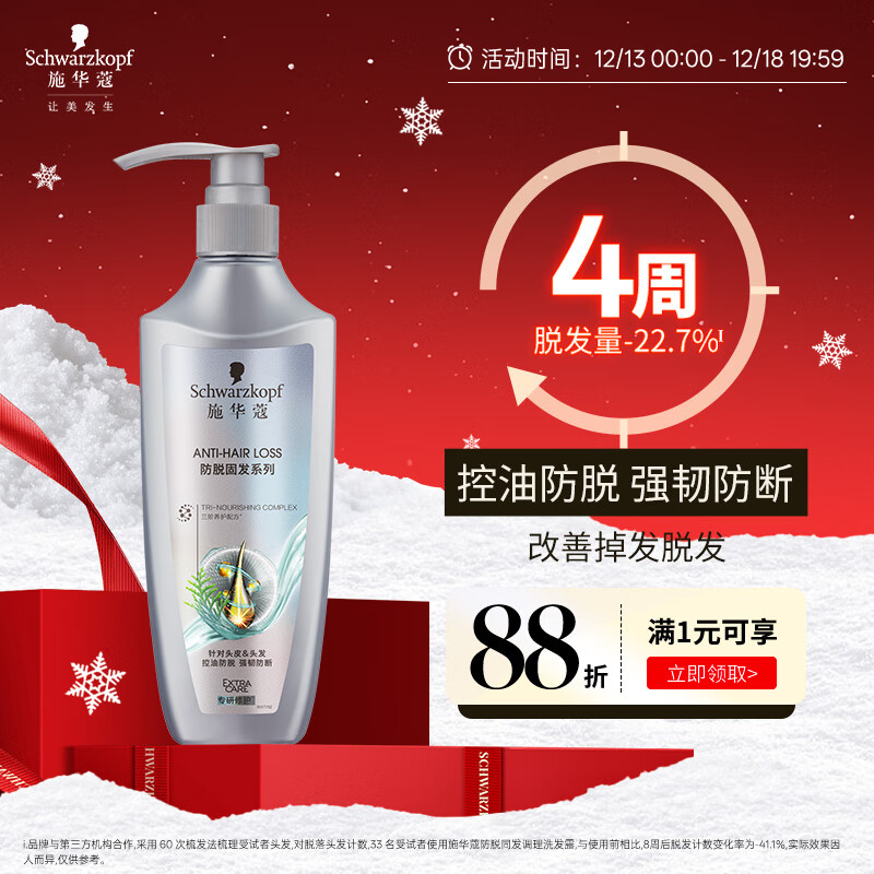 施华蔻(Schwarzkopf)防脱固发洗发露400ml 控油防脱发 固发防断发掉发女士新老包装